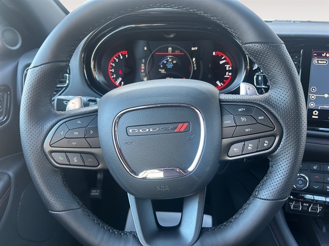 Never get into a cold vehicle again with the remote start feature on the vehicle. The vehicle features a hands-free Bluetooth phone system. Protect this vehicle from unwanted accidents with a cutting edge backup camera system. The installed navigation system will keep you on the right path. It has automated speed control that adjusts to maintain a safe following distance, enhancing highway driving convenience. The leather seats in this unit are a must for buyers looking for comfort, durability, and style. This unit's Forward Collision Warning feature alerts drivers to potential front-end collisions. It comes equipped with Android Auto for seamless smartphone integration on the road. Keep your hands warm all winter with a heated steering wheel in the Dodge Durango . This model offers Apple CarPlay for seamless connectivity. This Dodge Durango's Lane Departure Warning helps keep you in your lane. This mid-size suv has a V6, 3.6L high output engine.