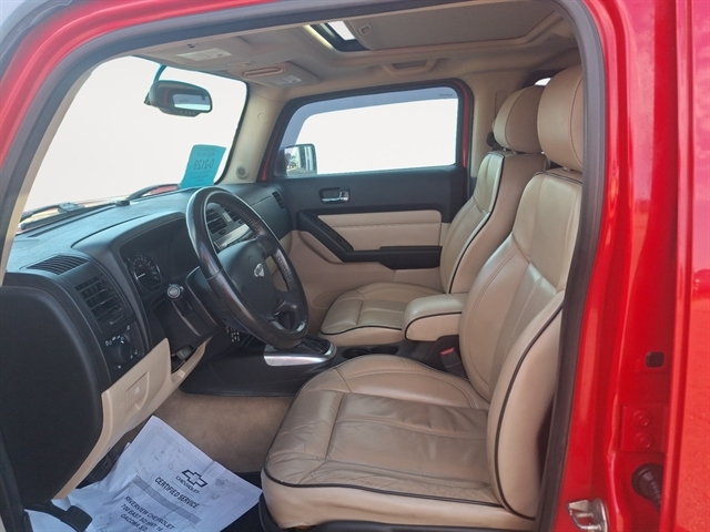 Our dealership has already run the CARFAX report and it is clean. A clean CARFAX is a great asset for resale value in the future. The leather seats in this mid-size suv are a must for buyers looking for comfort, durability, and style. The satellite radio system in this Hummer H3 gives you access to hundreds of nation-wide radio stations with a clear digital signal. This unit is equipped with the latest generation of XM/Sirius Radio. Maintaining a stable interior temperature in this model is easy with the climate control system. It is outfitted with an OnStar communication system. This mid-size suv excites both driver and bystanders with a polished red exterior with racy lines. This vehicle has a V8, 5.3L high output engine. This 2008 Hummer H3 1/2 ton has four wheel drive capabilities. Anti-lock brakes are standard on this Hummer H3. Easily set your speed in it with a state of the art cruise control system. Increase or decrease velocity with the touch of a button.