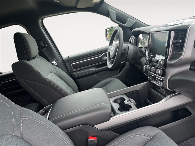 The Ram 1500 Big Horn's interior offers a blend of comfort and advanced technology. The heated steering wheel provides a warm touch for those cold mornings, while the intuitive Apple CarPlay and Android Auto integration keeps you seamlessly connected to your favorite apps and media.